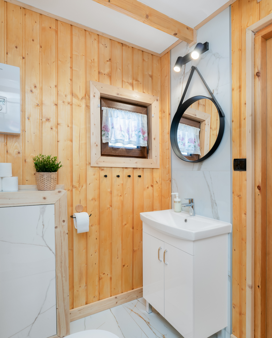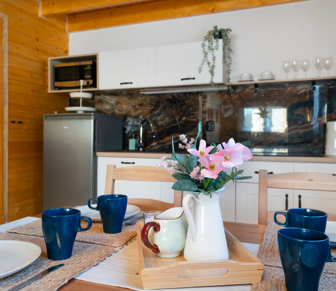 Każdy dom zaopatrzony jest we wszystkie potrzebne akcesoria: płyta indukcyjna, mikrofalówka, lodówka, komplet naczyń i sztućców, łazienka z prysznicem, ręcznikami, grill, leżaki, trampolina, parking, bezpłatne WiFi.