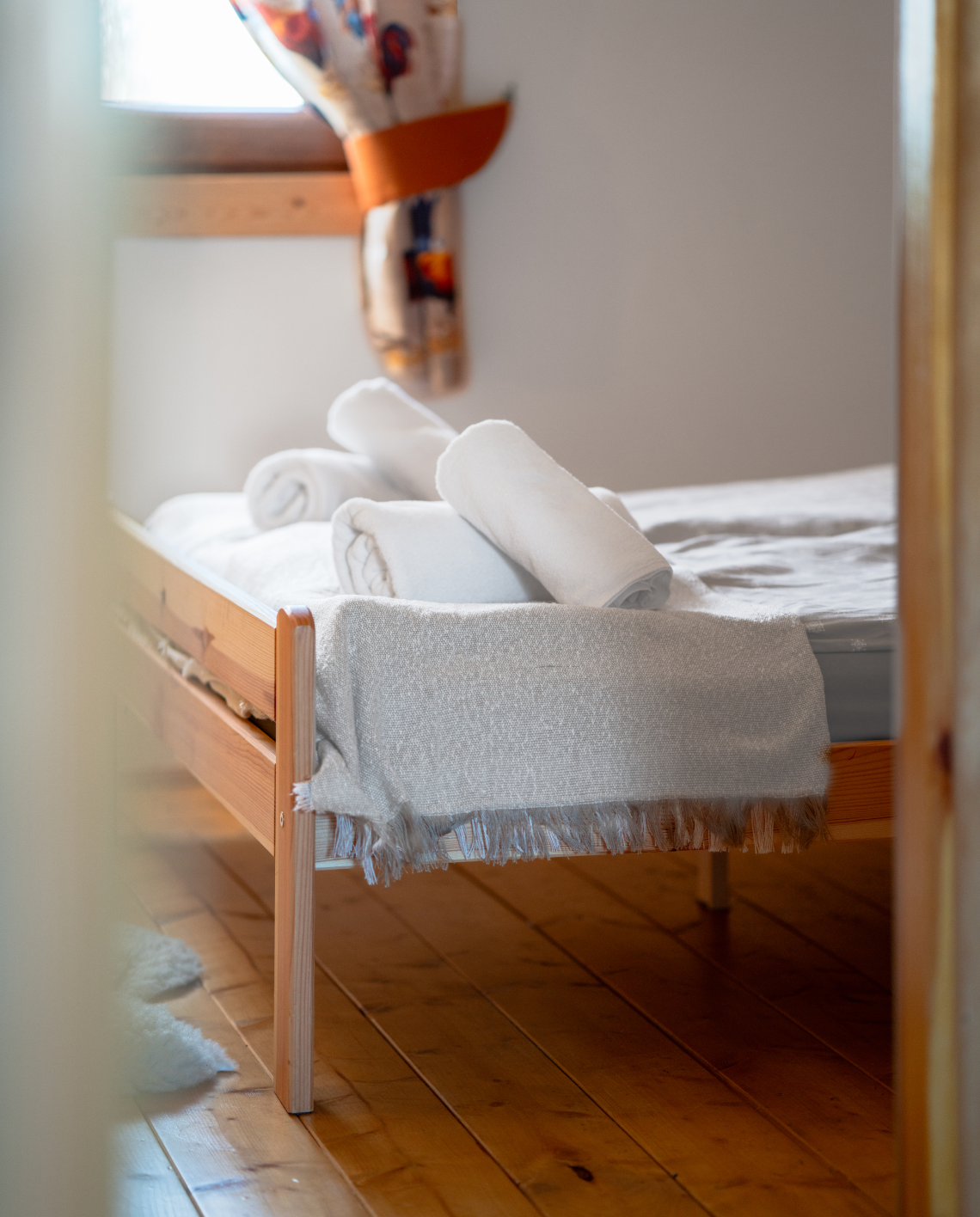 Na dużej, ogrodzonej działce znajdują się dwa domki. W każdym z domków dwie wygodne sypialnie, a w nich po 2 miejsca do spania. Do dyspozycji na parterze dodatkowo dwuosobowy rozkładany narożnik. W jednym domu może maksymalnie nocować 6 osób.
